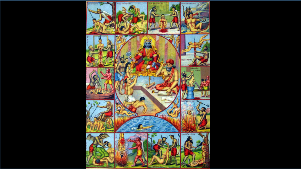 According to the Garuda Purana, the deceased’s soul is believed to set forth on a long and arduous journey to yamaloka pulled away from the memories of his surviving kith and kin by yama’s assistants. The Purana gives a detailed account of the soul’s journey and the travails it faces along the way, before it reaches yamaloka where its paapa/punya accounts are maintained.