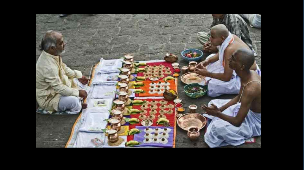 While the Vedic people offered the things that they believed the dead person would need on his upward journey as oblations into the fire, from the Puranic age, these items have come to be donated to the Brahmins who collect them on behalf of the dead persons.